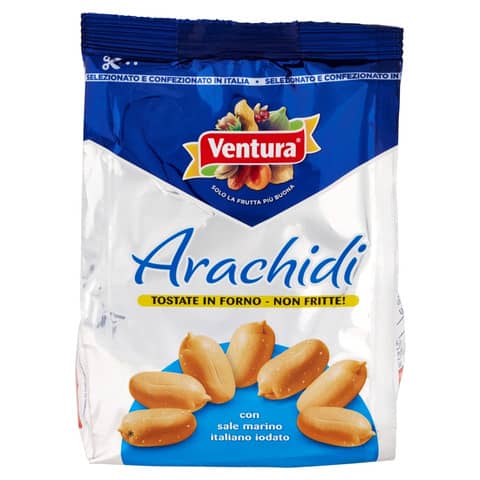 Arachidi pelate Tostate & Salate. Confezione da 12×255 gr. Composizione: arachidi pelate, sale(2%), aroma naturale.