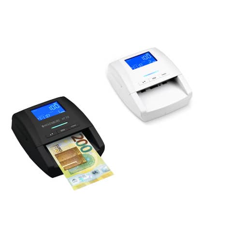 Conta verifica banconote di ultima generazione, dotato di tecnologia all’avanguardia e componentistica high-tech che conferiscono affidabilità e long-lasting. Il microprocessore di memoria ad alta capacità espandibile, la testina magnetica di dimensioni maggiori rispetto alle tradizionali, la nuova tecnica di rilevazione “SPETTRO” e i sensori infrarossi evoluti consentono di verificare le banconote in modo performante e preciso. Valute: Euro e Sterlina Inglese. Controlli: IR, MG, DD, SPETTRO, QUALITA’ DELLA CARTA. Uscita delle banconote selezionabile frontale o posteriore. Allarme visivo e sonoro per banconote sospette. Report e importo totale a display. Software aggiornabile. Dimensioni: 137x117x62 mm. Peso: 0,46 Kg(senza batteria). Alimentazione: rete elettrica (alimentatore incluso) o batteria ricaricabile (opzionale). Colore: nero.
