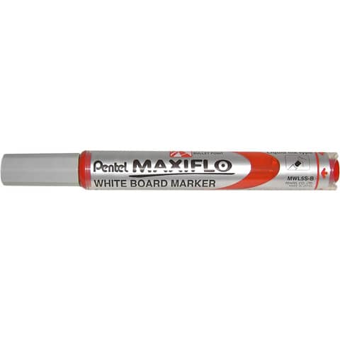 Marcatore ad inchiostro liquido per lavagna bianca. Punta conica. Grazie all’inchiostro liquido e al dispositivo a pulsante la lunghezza di scrittura è circa tre volte quella di un marcatore standard. Cancellabile a secco. Punta 4,0 mm, tratto 1,6 mm. Colore rosso.