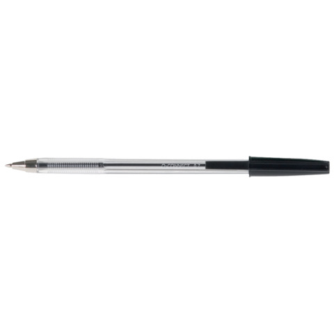 Penna a sfera con cappuccio, punta in carburo di tungsteno per una scrittura scorrevole. Lunghezza di scrittura 2000 metri, cappuccio ventilato, punta media 0,7 mm. Colore nero.