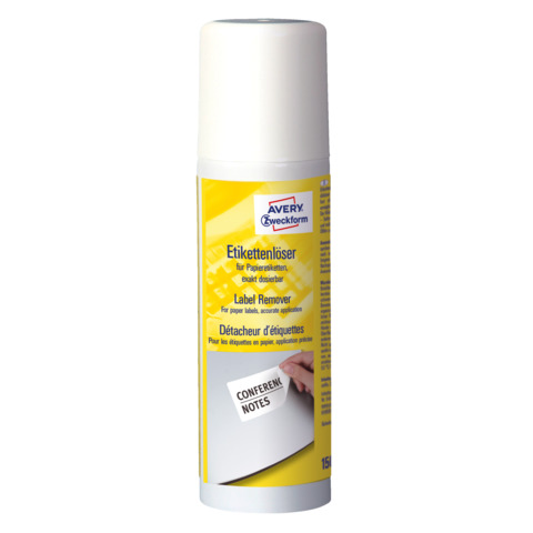 Hai applicato un’etichetta su una superficie in vetro, in metallo o in plastica ed ora non riesci più a rimuoverla? Utilizza lo spray rimuovi etichette Avery, non lascia residui ed è realizzato con componenti di origini naturali. Dotato di sistema di sicurezza a prova di bambino.